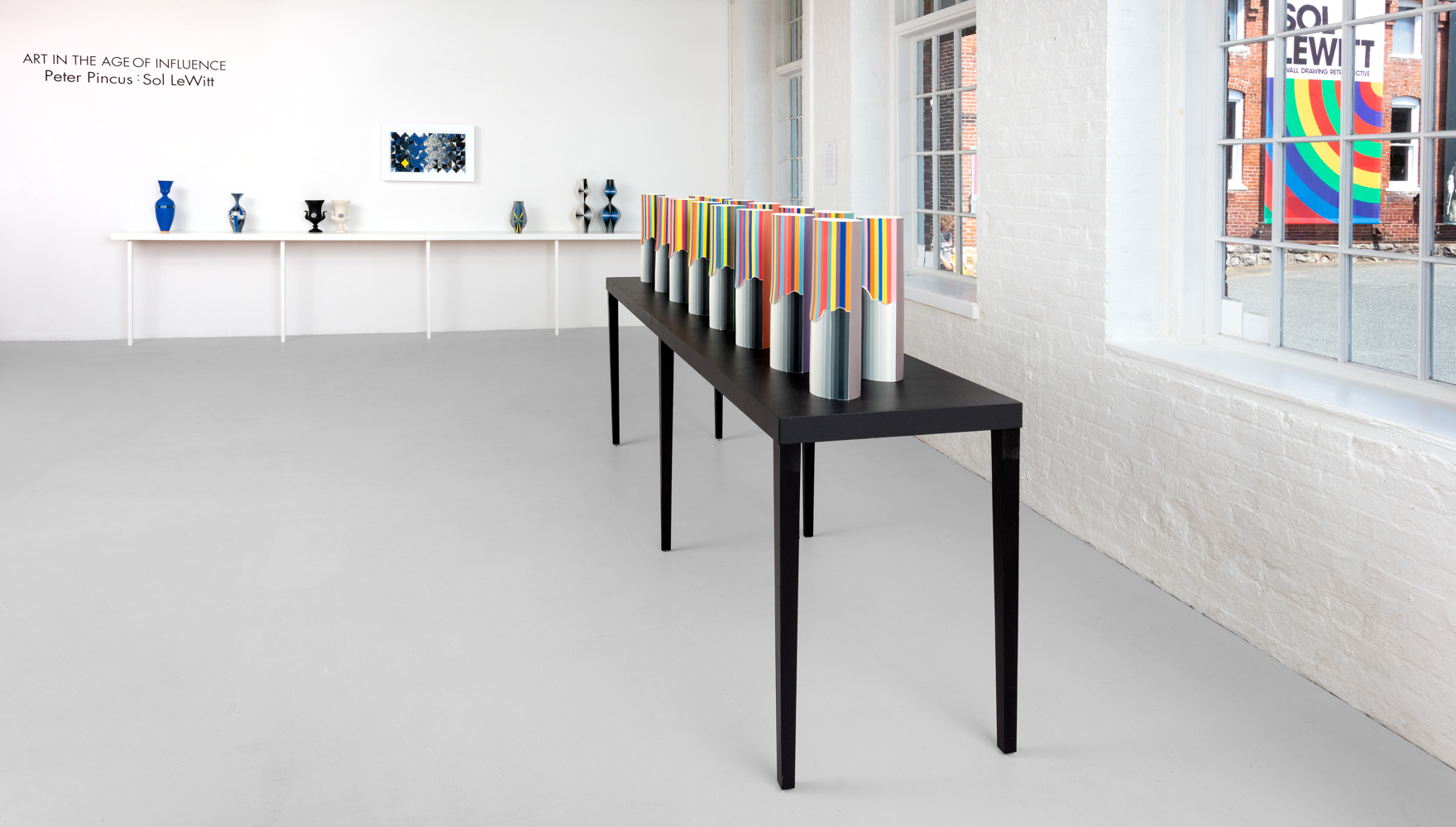 Gallery director, Leslie Ferrin notes âPincus’ work in this exhibition began during his first visit to our gallery located on the MASS MoCA campus for the opening of a group show, Glazed and Diffused. After a full day exploring Sol LeWitt: A Wall Drawing Retrospective, we had an animated discussion of how the LeWitt works related to his creative practice. Like LeWitt, Pincus often begins a new series using a premise to explore various possibilities of form and color within a shared framework.â