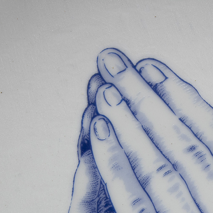 For my series of blue and white porcelain panels, I explore personal and cultural memory, value and class. I slip cast these objects in porcelain and smother their surface with blue and white Delft-inspired decals. The alchemical change that occurs in the firing process turns memories into memorials, ultimately transforming vintage clutter into blue and white porcelain paintings.