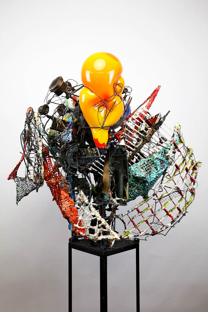 The medium of glass is attractive but I never had an occasion to explore it. In 2013, I met Lorin Silverman, an expert glassblower and artist. He worked then for Corning Museum as a technician helping artists to realize their vision in glass. We researched and developed a way to blow glass into a metal armature.