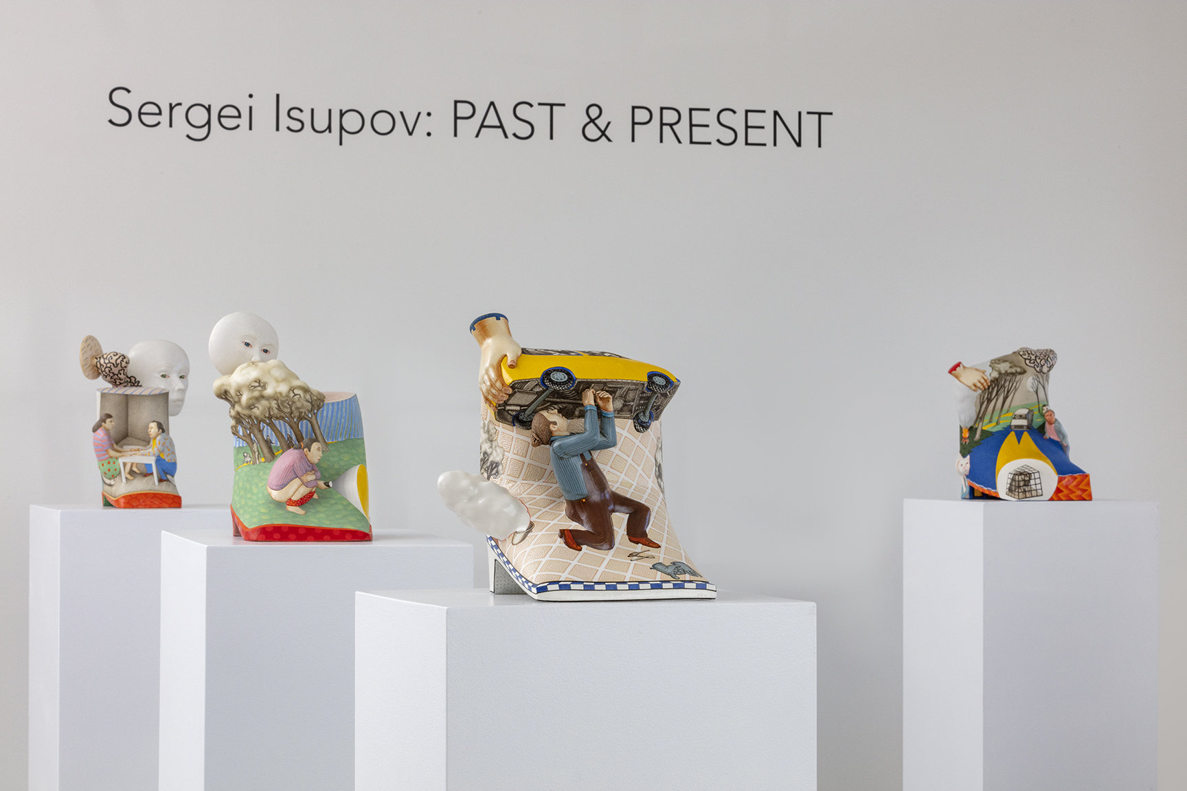 Isupov has a long international resume with work included in numerous collections and exhibitions including the National Gallery of Australia, Museum Angewandte in Kunst, Germany, and in the US at the Carnegie Museum of Art, Crocker Art Museum, Everson Museum of Art, Fine Arts Museum of San Francisco, Museum of Arts and Design, Museum of Fine ArtsâBoston, Museum of Fine ArtsâHouston, Mint Museum of Art, and Racine Art Museum. In 2017, his solo exhibition at The Erie Art Museum presented selected works in a 20-year career survey titled Hidden Messages, followed by Surreal Promenade e, another survey solo in 2019 at the Russian Museum of Art in Minnesota. Focusing on stand-alone figures and couplets, Isupov exhibited solo shows, Alliances (2023) at Thorne-Sagendoph Art Gallery at Keene State College, Ancestor (2024), in the Anderson Gallery at Bridgewater State University, and Moments from Eternity (2025), at District Clay Center in Washington, DC.Â